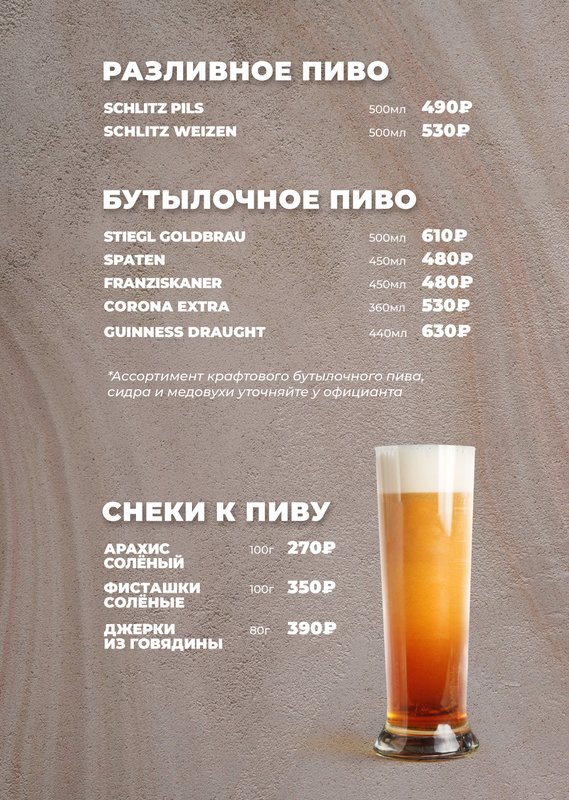 Мне понравился замечательный диджей, который играл и в прошлый раз, а также отличная кухня. Мы заказывали стандартные снеки к пиву: картошку фри и салат цезарь, все было прекрасно. Из напитков мы обычно берем шоты или пиво.